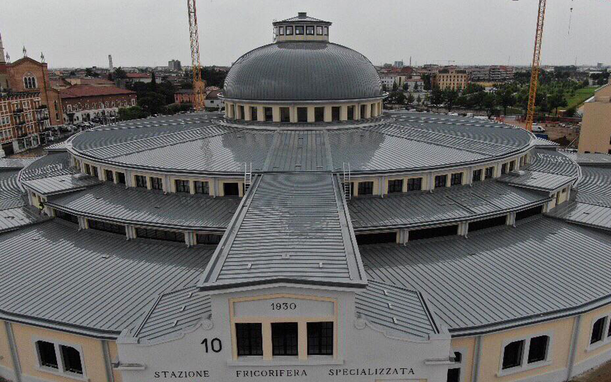 Descrizione lavoro: Rivestimento cupola di Verona i lastre di alluminio giuntate in doppia aggraffatura