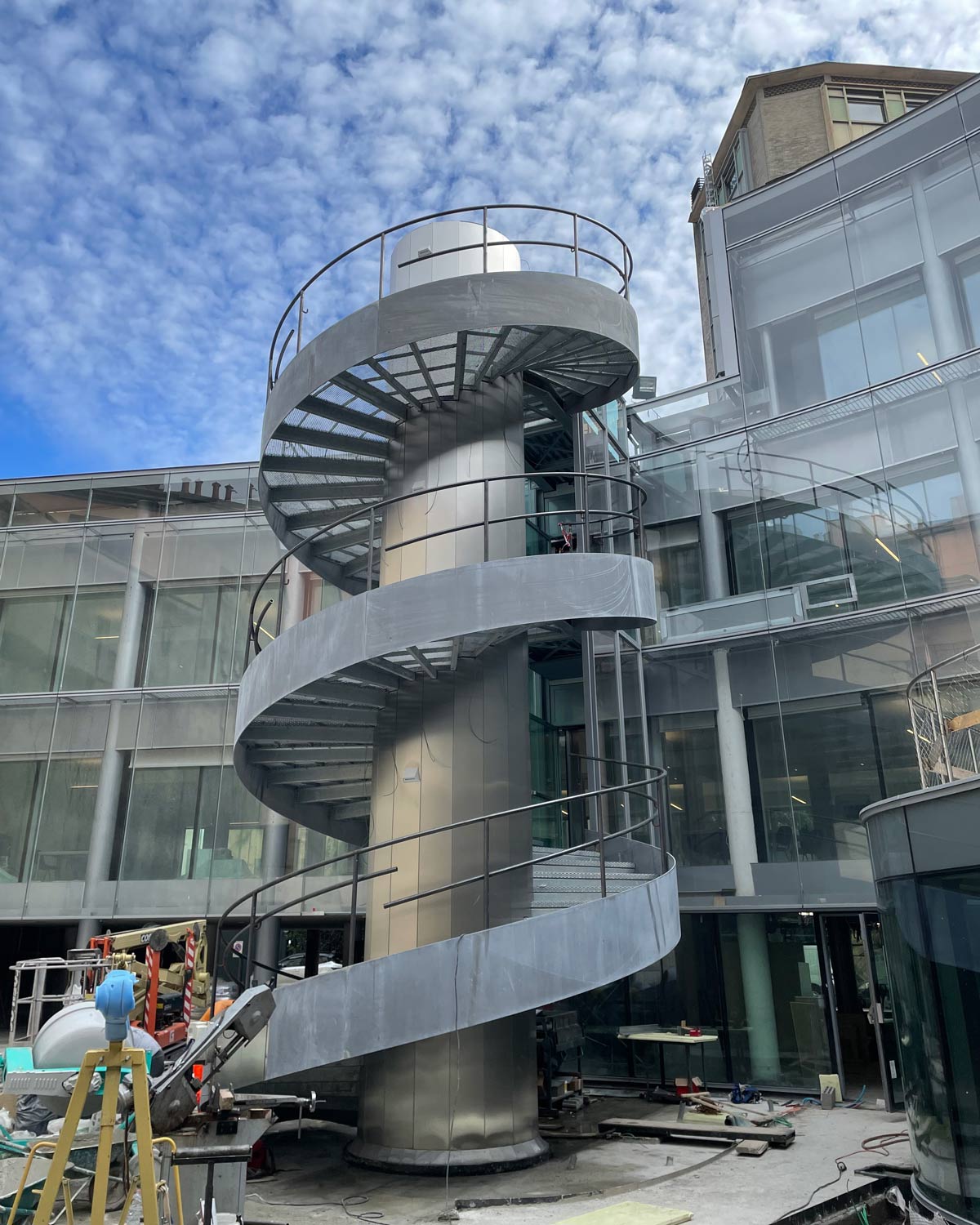 Doghe acciaio Inox satinato sp.6/10 calandrate e scantonate in opera